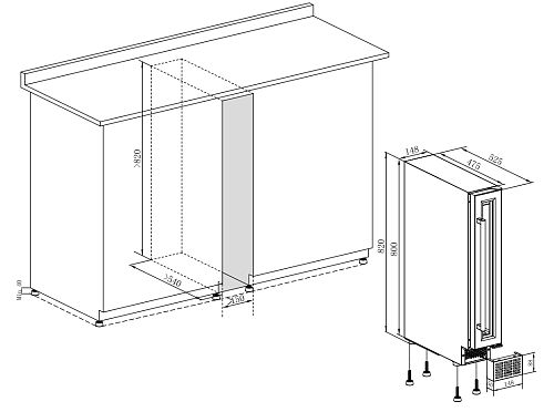 • Размеры ниши (ШхГхВ): 151х545х823 мм