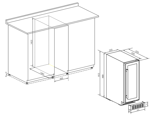 • Тип: встраиваемый винный шкаф (ультраузкий)