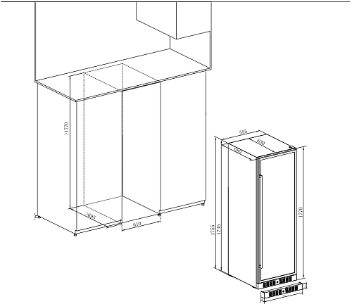 • Создание винного погреба в стандартной колонне – габариты 177×59,5×68 см позволяют встроить полноценное винохранилище в кухонную колонну, заменяя несколько стандартных модулей и обеспечивая максимальную вместительность при минимальной занимаемой площади.