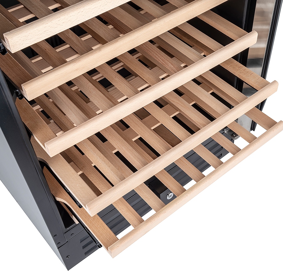 • Инновационная система гашения вибраций – компрессор установлен на специальных демпфирующих ножках, которые эффективно поглощают механические колебания. Это создает абсолютно стабильные условия, идентичные профессиональному винохранилищу, что критически важно для выдержанных и коллекционных экземпляров.