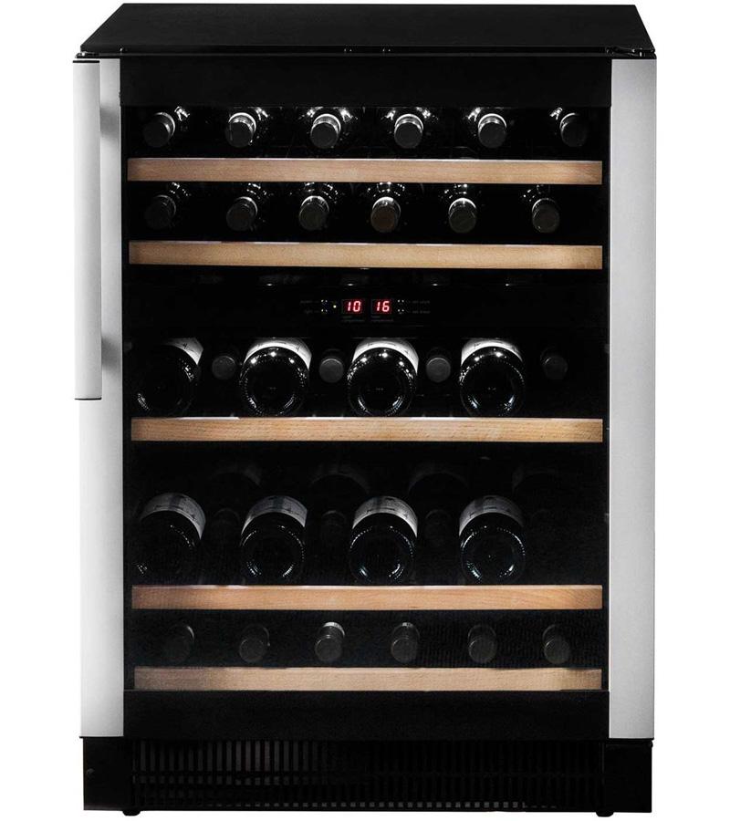 Особенностью данной модели является съемная вентиляционная решетка в нижней части шкафа, которая позволяет установить цоколь от кухонной мебели, регулируемые ножки позволяют изменять высоту винного шкафа с 82 до 89 сантиметров.