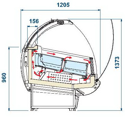 Каркас изготовлен из углеродистой стали, окрашенной порошковой краской, дно зоны выкладки - из полированной нержавеющей стали, задняя панель - из пластифицированной стали и контейнеры - из прозрачного полиуретана. Цельный корпус имеет изоляцию из пенополиуретана, вспененного углекислотой, без использования озоноразрушающих веществ.