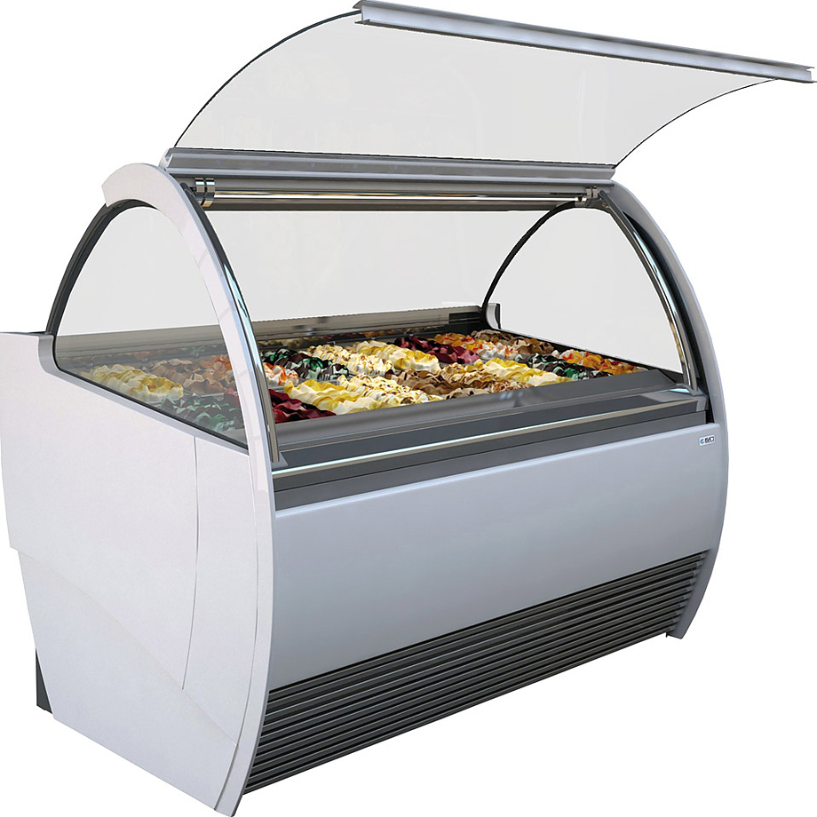 Угловая витрина для мороженого ISA Mito Winner AI 22.5 используется на предприятиях общественного питания и торговли для демонстрации и хранения мороженого, сорбета и йогурт-мороженого.