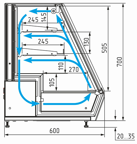 • Внутренний объем экспозиционной площади 0,64 м2/полезный объем 0,08 м3