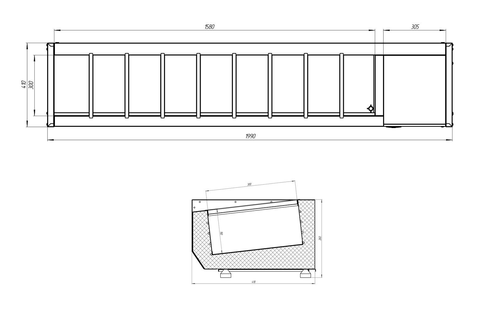 • Размеры: 1990*410*260