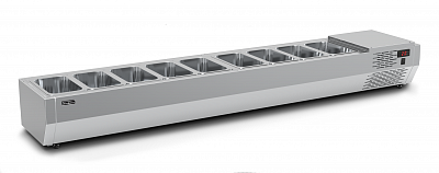 Витрина для ингредиентов Полюс Carboma A30 SM 1,9 (9 GN1/4) используется на предприятиях общественного питания и торговли для охлаждения и кратковременного хранения закусок, фруктов, овощей, ингредиентов для салатов.