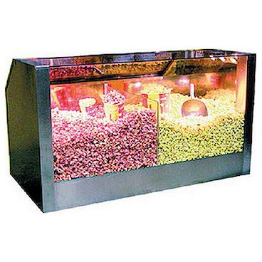 Витрина для попкорна напольная насыпная двухсекционная ТТМ VTP2-090n с подогревом, подсветкой. При отгрузке стекло упаковывается отдельно от витрины.