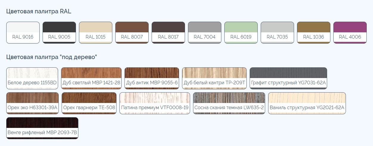 "Цветовая палитра RAL" и "расширенная палитра" см. в разделе "Обзор товара"