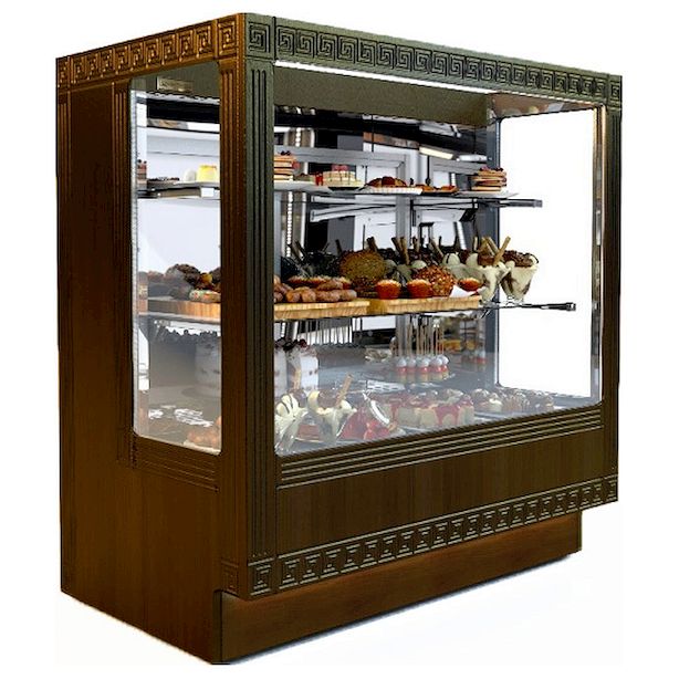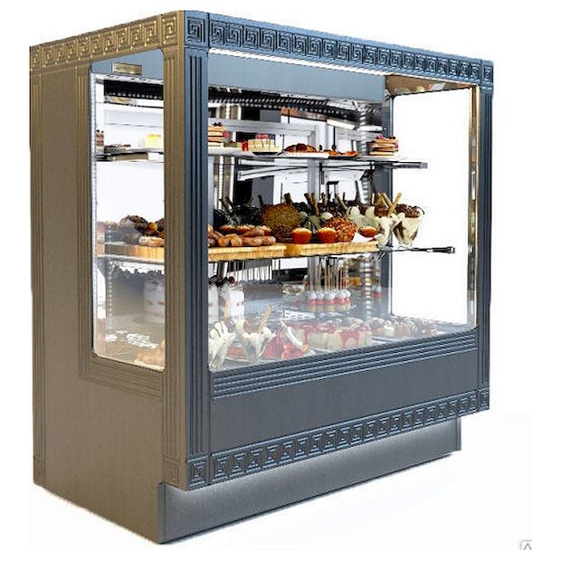 Витрина горизонтальная Glacier СТЕЛЛА 1.6 высокая используется для демонстрации выпечки, тортов, пирожных, пиццы на предприятиях торговли и общепита.