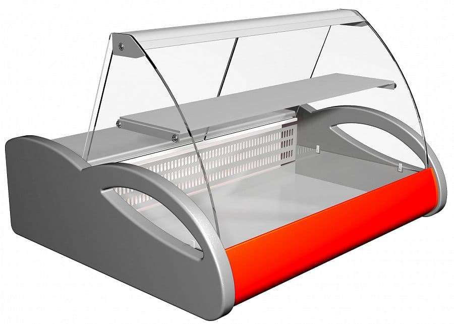 Модель оснащена гнутым передним стеклом, неохлаждаемой полкой и ночными шторками из органического стекла. Корпус выполнен из стали с ППУ-теплоизоляцией, передняя обшивка, столешница и полка - из нержавеющей стали, боковины - из черного пластика.