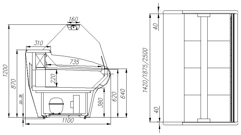 • Витрины предназначены для эксплуатации в закрытом помещении с естественной вентиляцией при температуре окружающей среды от +12 до +25 и относительной влажности не более 60%