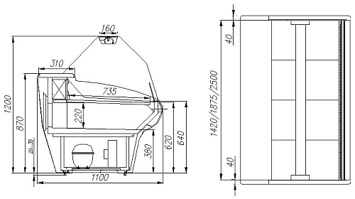 На фото - модель с боковинами. Модели без боковин используются для установки нескольких витрин в линию.