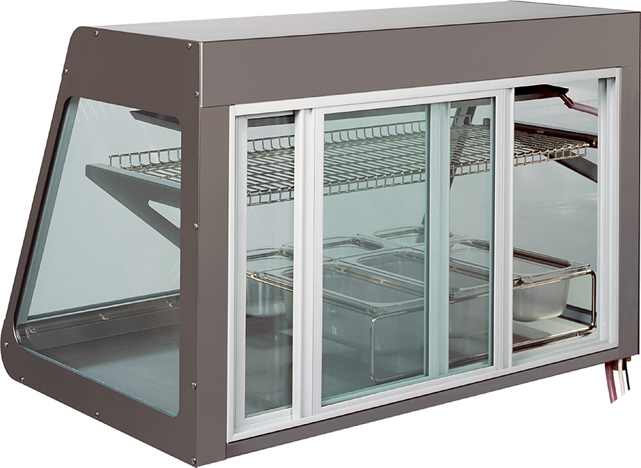 • Стеклянные раздвижные дверцы в задней части витрины