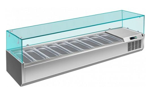 Витрина Hurakan HKN-VRX2000/380 применяется для демонстрации, охлаждения и кратковременного хранения салатов, ингредиентов для пиццы на предприятиях общественного питания и торговли.