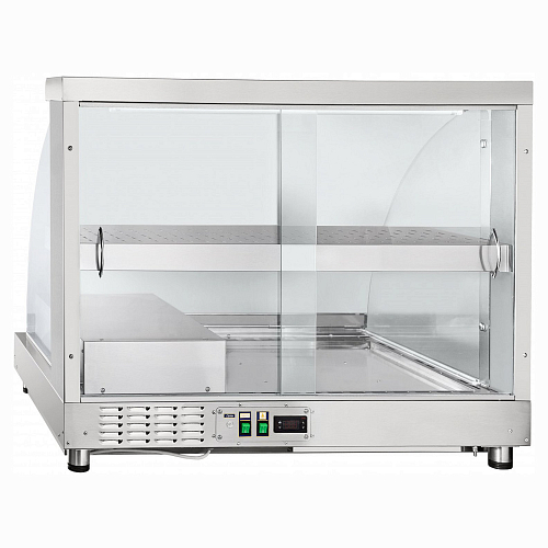 Конструкция, полка и стойки выполнены из высококачественной нержавеющей стали AISI 304 толщиной 1 мм, боковые стенки и дверцы - из закаленного стекла толщиной 5 мм. Эксплуатация витрины допускается при температуре окружающей среды от 12 до 32 °C