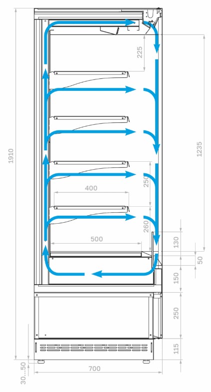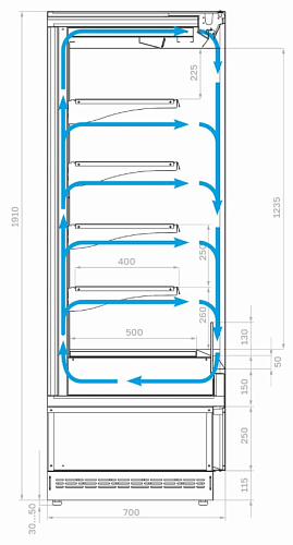 • Высота зоны выкладки: 1235 мм