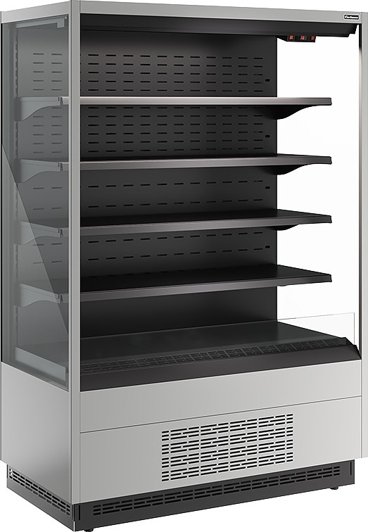Витрина холодильная Полюс Carboma FC 20-07 VM 1,3-2 (версия 2.0) (9006-9005) используется на предприятиях общественного питания и торговли для охлаждения, кратковременного хранения и предпродажной демонстрации напитков, мяса, птицы, полуфабрикатов, молочных и гастрономических изделий. Модель оснащена 4 рядами навесных полок с кронштейнами, подставкой с фронтальной термовыводящей и цокольной решетками. Корпус прямоугольно ориентированной формы выполнен из стали с антикоррозийным покрытием внешних панелей, полок и кронштейнов серого цвета (RAL 9006), цоколя и интерьера черного цвета (RAL 9005), теплоизоляция – из пенополиуретана.