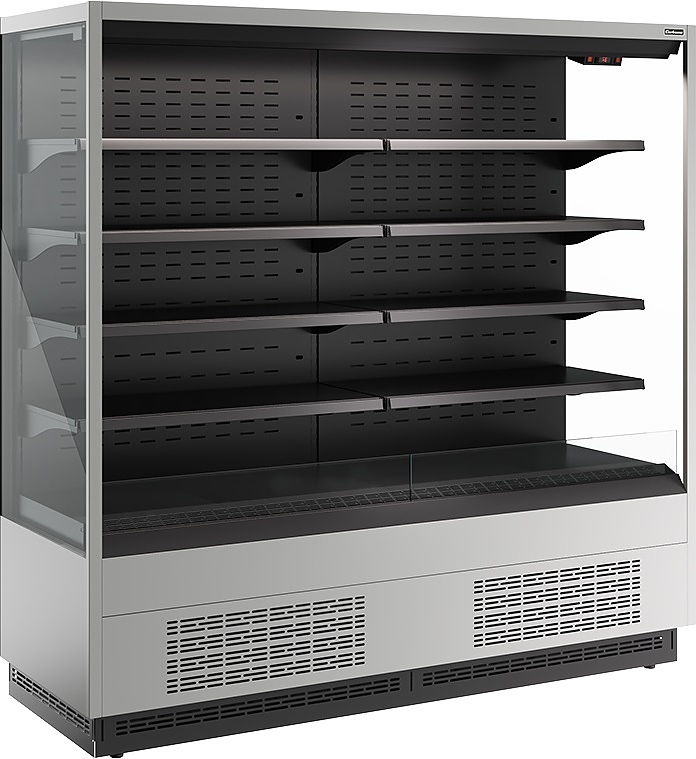 Витрина холодильная Полюс Carboma FC20-07 VM 1,9-2 (версия 2.0) (9006-9005)используется на предприятиях общественного питания и торговли для охлаждения, кратковременного хранения и предпродажной демонстрации напитков, мяса, птицы, полуфабрикатов, молочных и гастрономических изделий. Модель оснащена 4 рядами навесных полок с кронштейнами, подставкой с фронтальной термовыводящей и цокольной решетками. Корпус прямоугольно ориентированной формы выполнен из стали с антикоррозийным покрытием внешних панелей, полок и кронштейнов серого цвета (RAL 9006), цоколя и интерьера черного цвета (RAL 9005), теплоизоляция – из пенополиуретана.