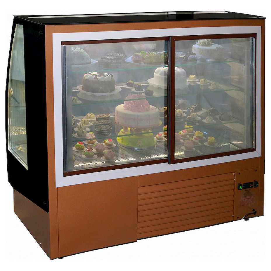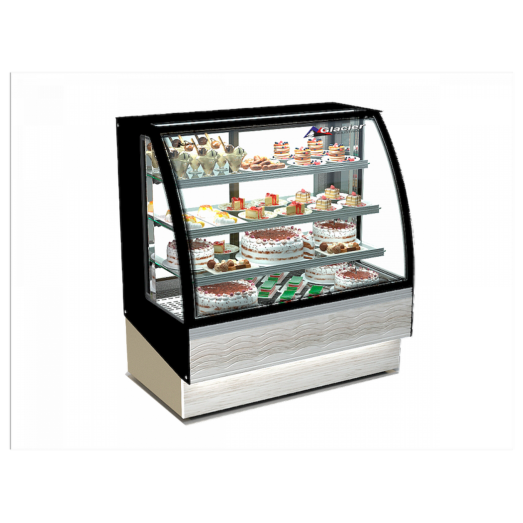 Витрина холодильная Glacier МАРИЯ АКВА 1.4 гнутое стекло устанавливается в кондитерских отделах магазинов, в кафе и ресторанах для демонстрации и реализации выпечки, сэндвичей, пиццы, хлеба и кондитерских деликатесов, а также шоколадных изделий.