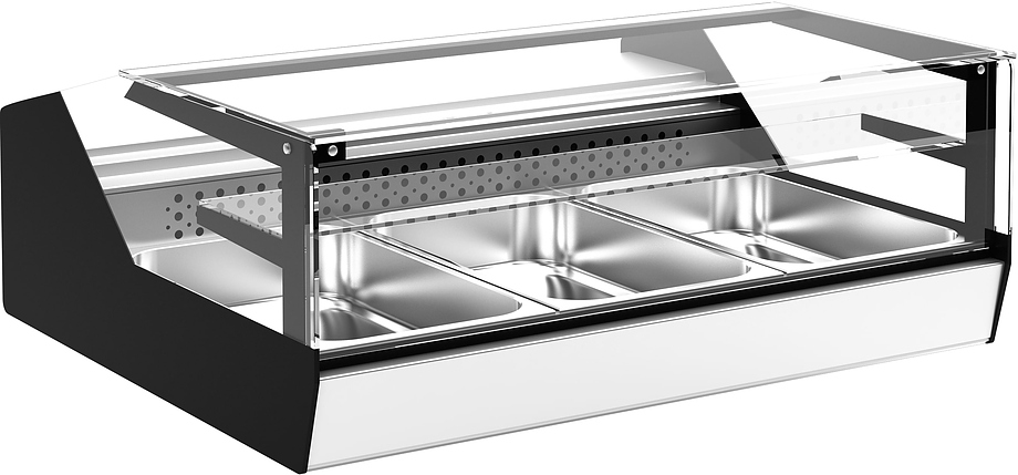 Витрина холодильная настольная KAYMAN ВСА-М1 предназначена для охлаждения, кратковременного хранения и демонстрации готовых блюд и полуфабрикатов на предприятиях общественного питания и торговли. Модель оснащена неохлаждаемой полкой, прямым передним стеклом, LED-подсветкой внутреннего объема и энергосберегающими ночными шторками. Корпус выполнен из стали с термоизоляцией из пенополиуретана, экспозиционная поверхность - из нержавеющей стали, полка - из стекла.