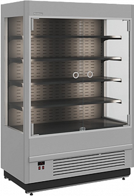 Витрина холодильная Полюс FC20-07 VM 1,0-1 LIGHT (фронт X0) (9006-9005 цвет серо-черный) П0000009816.2641 используется на предприятиях общественного питания и торговли для охлаждения, кратковременного хранения, демонстрации и продажи напитков, мяса, птицы, колбасных, молочных и гастрономических изделий. Модель оснащена энергосберегающим стеклопакетом, 2 распашными дверьми с петлями с доводчиком, 4 полками с кронштейнами c возможностью расположения под углом и изменения высоты и регулируемыми ножками высотой от 30 до 50 мм. Корпус выполнен из окрашенной стали с ППУ изоляцией, двери - из каленого низкоэмиссионного стекла толщиной 6 мм.