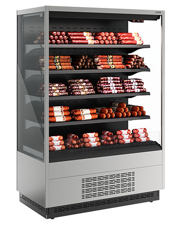 Витрина холодильная Полюс FC20-07 VM 1,0-2 (версия 2.0) (9006-9005) используется на предприятиях общественного питания и торговли для охлаждения, кратковременного хранения и предпродажной демонстрации напитков, мяса, птицы, полуфабрикатов, молочных и гастрономических изделий. Модель оснащена 4 рядами навесных полок с кронштейнами, подставкой с фронтальной термовыводящей и цокольной решетками. Корпус прямоугольно ориентированной формы выполнен из стали с антикоррозийным покрытием внешних панелей, полок и кронштейнов серого цвета (RAL 9006), цоколя и интерьера черного цвета (RAL 9005), теплоизоляция – из пенополиуретана.