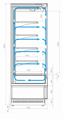 • Высота зоны выкладки: 1235 мм