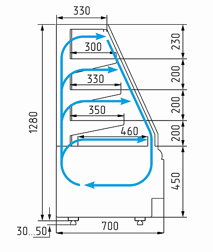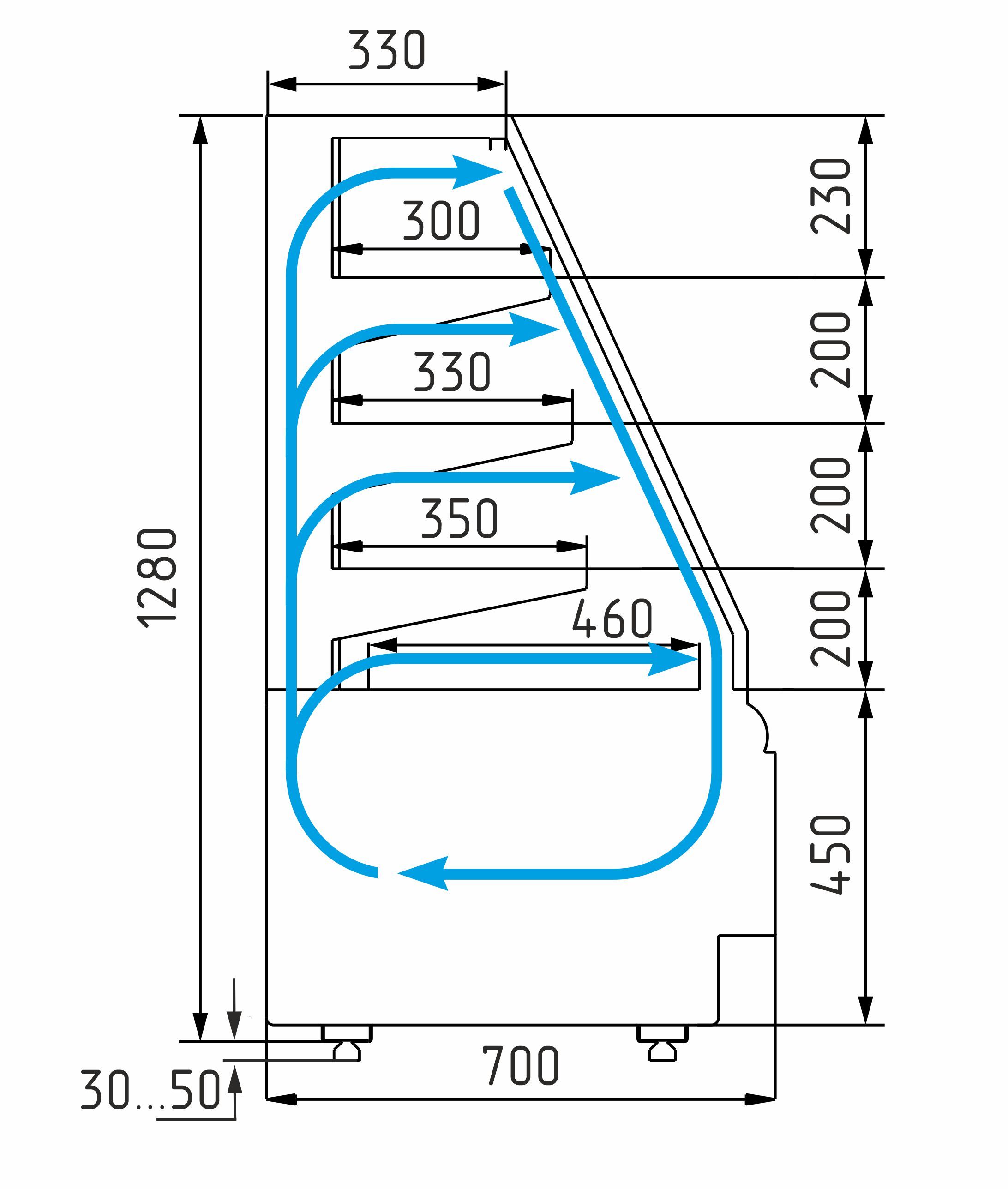 • Макс. высота выкладки продуктов 150 мм