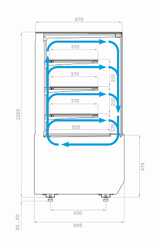 Витрина должна быть установлена не ближе 2 м от отопительных приборов. Запрещается эксплуатация витрины при попадании на нее прямых солнечных лучей, воздушных потоков от кондиционеров, вентиляторов и обогревателей.