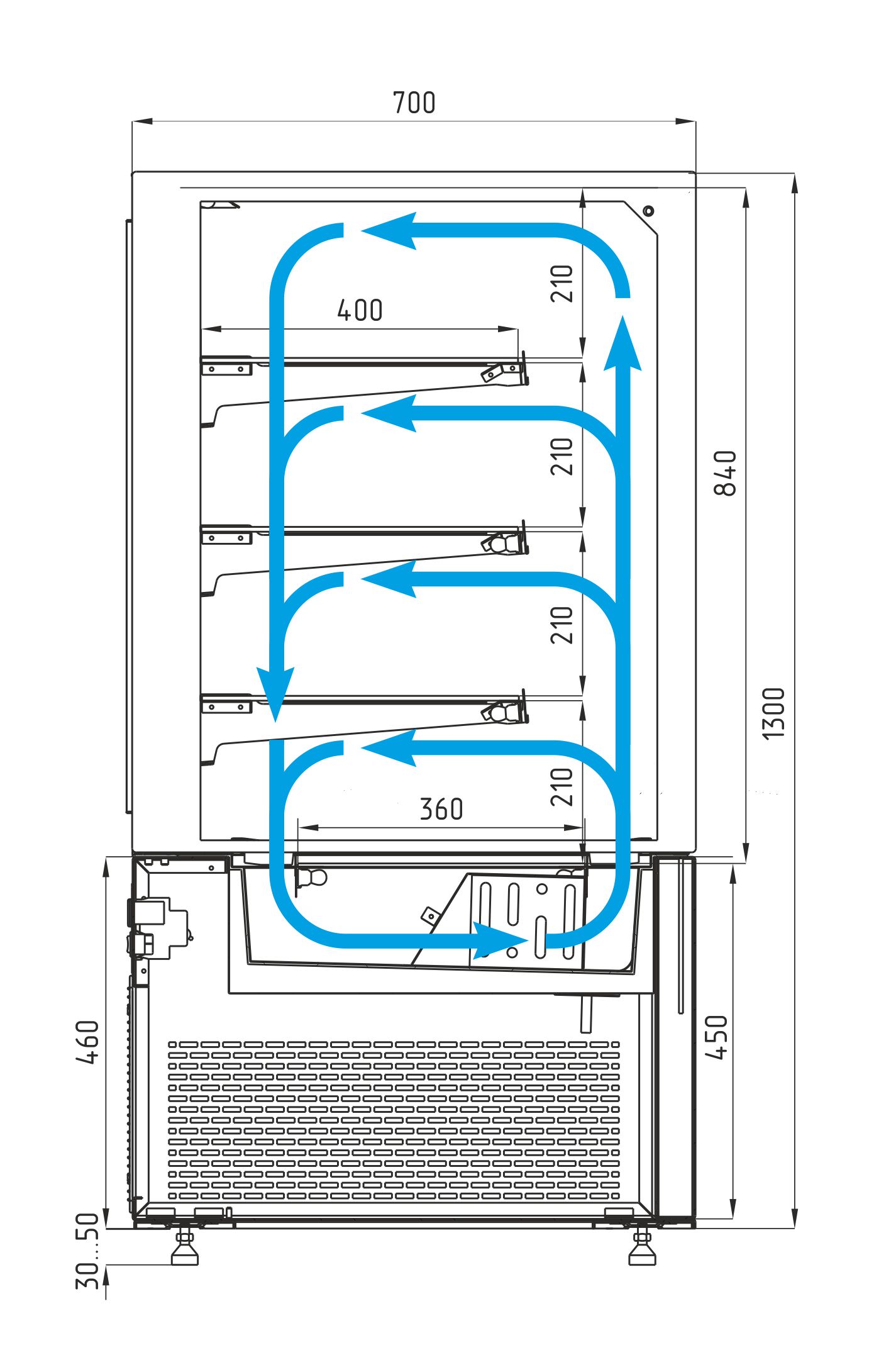 Глубина выкладки, мм 360