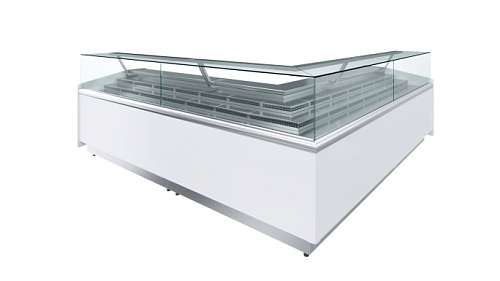 Прямое переднее стекло и регулируемые ножки высотой от 30 до 50 м. Корпус выполнен из стали с ППУ-теплоизоляцией, зона выкладки и столешница из нержавеющей стали, раздвижные задние створки из оргстекла, передняя панель из МДФ белого цвета или декорированного под дерево.