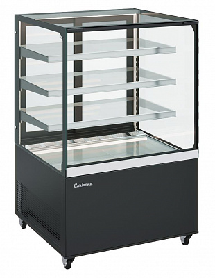 Витрина кондитерская Полюс Carboma COSMO KC84-130 VV 0,9-1 используется для демонстрации, охлаждения и кратковременного хранения напитков, тортов, пирожных и других кондитерских изделий и гастрономических товаров на предприятиях общественного питания и торговли. 4-х сторонние остекление, откидывающие передний стеклопакет, 3 регулируемые по уровню стеклянные полки со встроенными ценникодержателями и регулируемые ножки высотой от 30 до 50 мм. Корпус выполнен из стали и пластика, термоизоляция корпуса - из пенополиуретана.