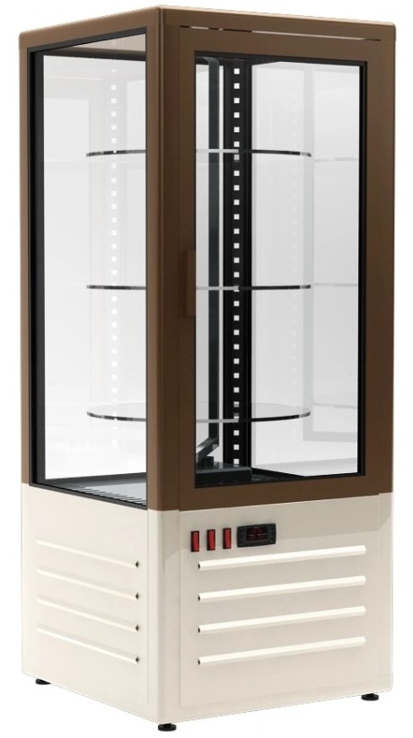 Витрина кондитерская Полюс Carboma D4 VM 120-2 (R120Cвр), бежево-коричневая 1015-0102 используется на предприятиях общественного питания и торговли для демонстрации, охлаждения и кратковременного хранения тортов, пирожных и других кондитерских изделий.