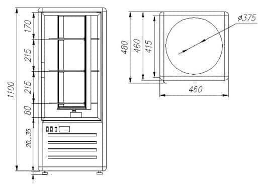 Модель оснащена 4-х сторонним остеклением, 3 крутящимися полками, которые можно устанавливать на разные уровни и регулируемыми колесами высотой от 20 до 35 мм.