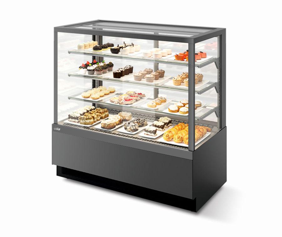 Витрина кондитерская Chilz Vete kub lux 130, Антрацит/Серый матовый T7016M.VG033.B7016M предназначена для демонстрации, охлаждения и краткосрочного хранения кондитерских изделий, закусок и десертов на предприятиях общественного питания и торговли. Модель оснащена 4 полками. Оборудование работает при температуре окружающей среды 25 °С и влажности 60%.