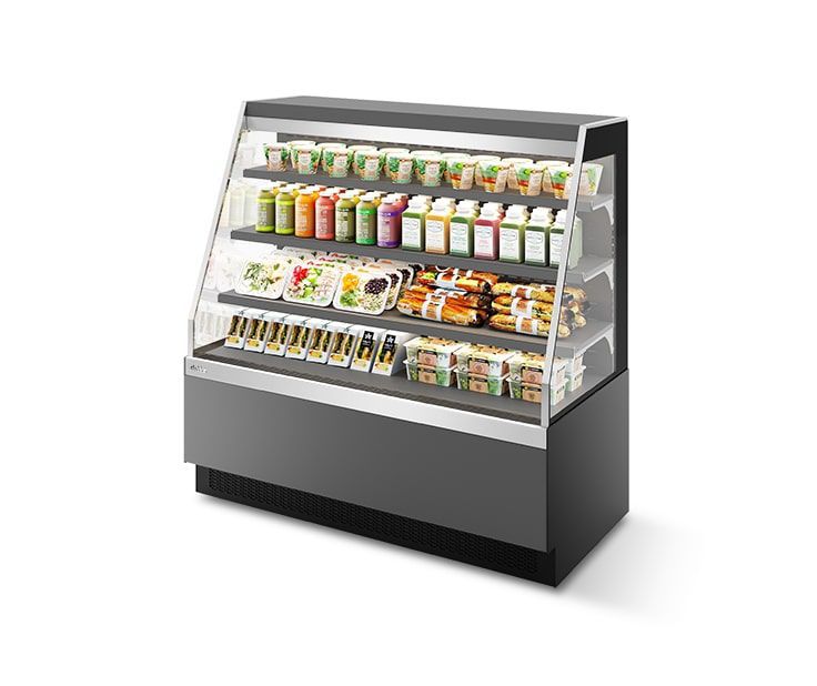 Конструкция витрины лаконична и элегантна — позволяет эффективно организовать продуктовую выкладку в ограниченном пространстве.