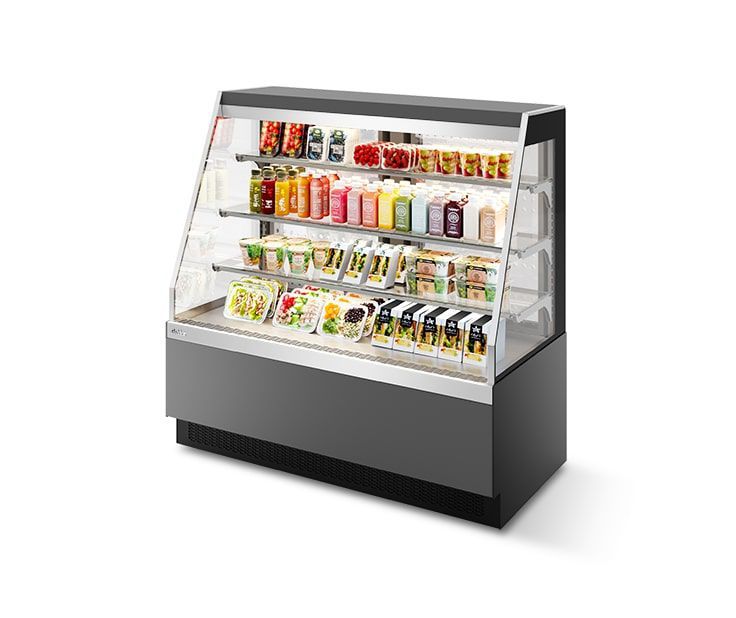 Конструкция витрины лаконична и элегантна — позволяет эффективно организовать продуктовую выкладку в ограниченном пространстве.