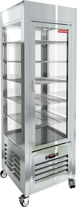 Витрина выполнена полностью из нержавеющей стали марки AISI 430. Стеклянные стенки и двери из стеклопакетов обеспечивают прекрасный обзор товара.