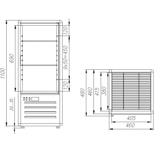 Витрина кондитерская Полюс Carboma D4 VM 120-1 (R120C), коричнево-золотая 0109-0102 односекционная, с 2 полками-решётками (380х405мм) предназначена для демонстрации кондитерских изделий и десертов в магазинах, кафе, ресторанах. Температурный режим: +6/+12С. Горизонтальная площадь экспозиции - 0,44м2. Полезный объем - 0,09м3. Потребление электроэнергии - 4000Вт/сутки. Витрина оснащена микропроцессорным блоком управления с индикацией температуры, стенками из стеклопакетов, стеклянной дверью, LED-подсветкой, динамической системой охлаждения, холодильным агрегатом Danfoss. Для установки полок предусмотрено 9 положений с шагом 50мм. Климатический класс оборудования - 3. Витрина предназначена для эксплуатации в закрытом помещении с естественной вентиляцией при температуре окружающего воздуха от +12С до +25С и относительной влажности не более 60%. Высота витрины без установленных ножек - 1100мм. Ножки регулируются по высоте 20-35мм. Цвет корпуса - коричневый с отделкой под золото (brown&gold).