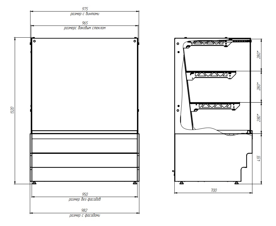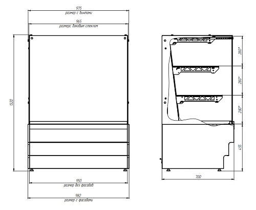 • Внешний обдув стекла со стороны покупателя для исключения запотевания