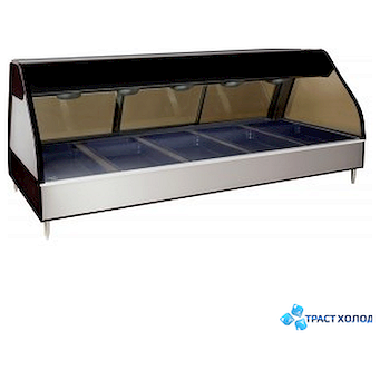 Благодаря уникальной технологии "теплового одеяла", в витрине поддерживается единая во всех точках температура – гарантия того, что продукт будет сохранен правильно в течение продолжительного времени и реализован в лучшем виде. Продукт будет не только всегда выглядеть привлекательно аппетитно, но и оставаться свежим в течение многих часов. На стекле витрины же никогда не появится конденсат, так как Вам не нужно будет ставить в нее ванночку с водой.