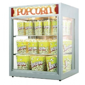 Оснащена системой принудительного подогрева готовой продукции циркулирующим горячим воздухом. Температура в камере ок. 60С (поддерживается автоматически). Витрина имеет 2 полки. Подсвеченная изнутри надпись POPCORN со стороны раздвижных дверок. Внутренняя подсветка камеры. Вместимость - 24 стакана V170 или 36 стаканов V85. Корпус витрины изготовлен из стали и имеет пигментированное порошковое покрытие.