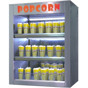 Витрина самообслуживания тепловая, с конвекцией, 3 полками, изготовлена из нержавеющей стали. Предназначена для демонстрации и хранения попкорна в стаканах.