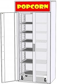 Витрина тепловая RoboLabs VTP-090SD1 используется на предприятиях общественного питания и торговли для демонстрации и хранения попкорна в стаканах и начоса. Модель оснащена 2 передними распашными стеклянными дверцами и задней глухой дверцей. Корпус выполнен из нержавеющей стали.