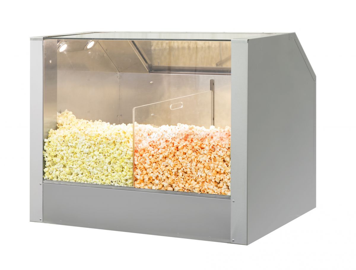 Витрина тепловая RoboLabs VTP2-090 используется на предприятиях общественного питания и торговли для хранения и продажи попкорна. Модель оснащена подогревом и подсветкой.