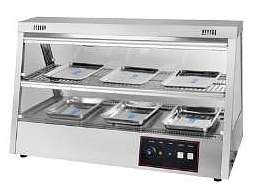 Витрина тепловая Rosso HW-2х3 предназначена для демонстрации и поддержания блюд в горячем состоянии на предприятиях общественного питания и торговли. Модель оснащена термостатом, декоративной лампой освещения для лучшего вида пищевых продуктов, поворотным переключателем для выбора температуры и 2 полками из нержавеющей стали.