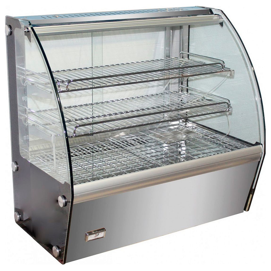 • В витрине установлены 2 хромированные полки-решетки + полка в основании