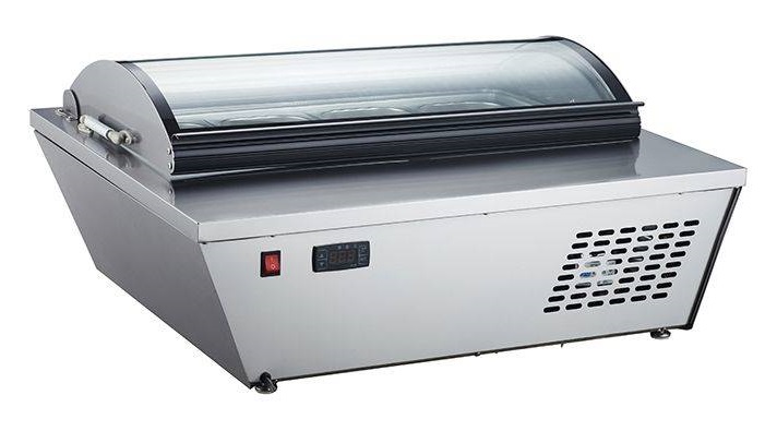 Витрина для мороженого Koreco RTD67L применяется для демонстрации и хранения мороженого, сорбета в заведениях общественного питания и на торговых предприятиях. Модель имеет 1 ярус, температурный режим от -22 до -18 °С, вместимость 8 гастроёмкостей GN 1/6 и глубиной 150 мм, объём 67 л.