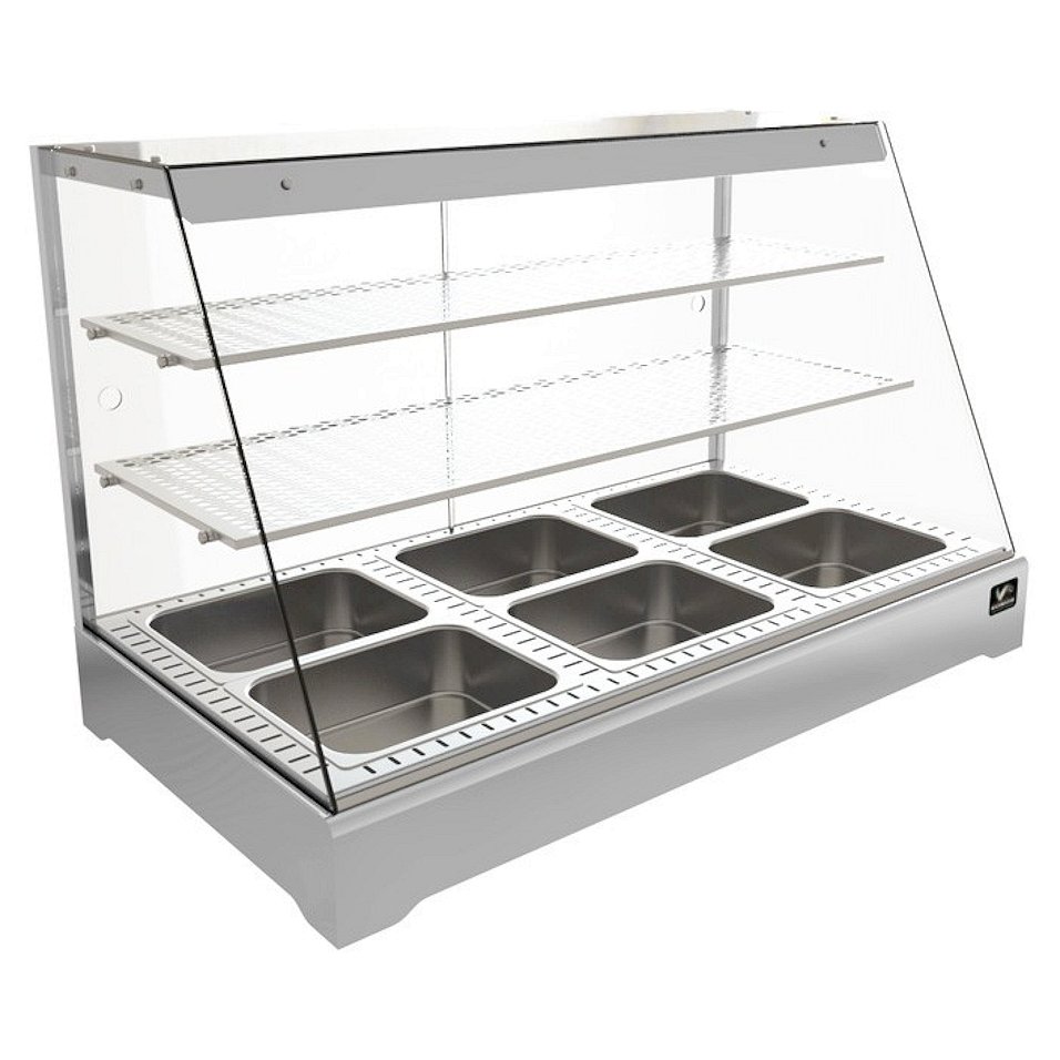 Витрина тепловая Кобор CR2-117H устанавливается в кафе, ресторанах, барах, а также в столовых и буфетах для демонстрации и хранения готовых блюд в горячем состоянии. Модель оснащена перфорированными полками 1120х350 и 1120х280 мм и подсветкой.