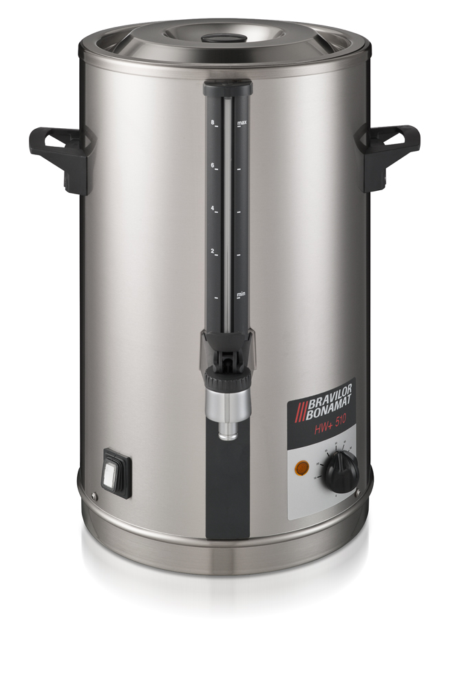 Водонагреватель Bravilor Bonamat HW+520 используется на предприятиях общественного питания и торговли для приготовления горячей воды, предназначенной для супа, каши, чая и других горячих напитков. Модель оснащена "не капающим" краном, быстрым нагревом воды до требуемой температуры, лампочкой-индикатором, показывающим, что вода нагрелась, защитой от сухого хода, герметичным клапаном и термостатом. Корпус имеет двойные стенки.